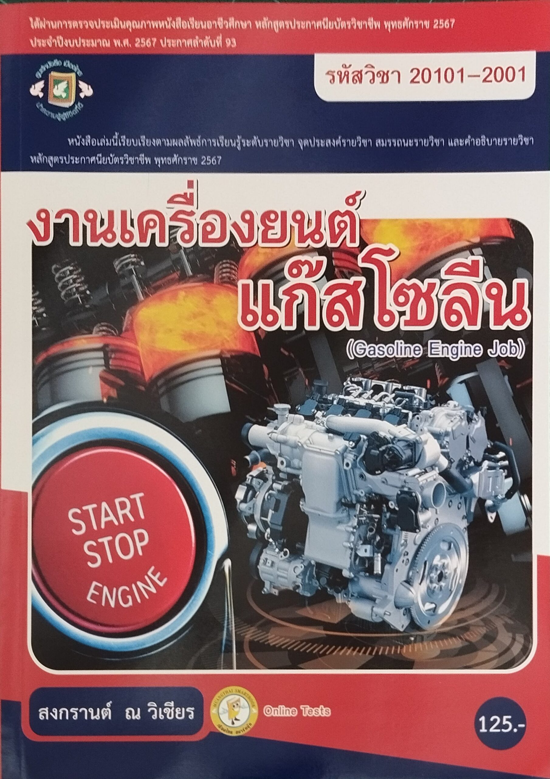 งานเครื่องยนต์แก๊สโซลีน รหัสวิชา 20101-2001 ความรู้พื้นฐานการใช้เครื่องมือช่างยนต์ หลักการทำงานเครื่องยนต์ โครงสร้างและชิ้นส่วนของเครื่องยนต์แก๊สโซลีน